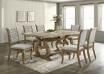 Elevate your dining experience with this antique oak dining set. The 100% solid wood base and 100% marble top exude luxury, while the pedestal design saves space. Includes antique oak chairs with neutral upholstery, nailhead trim, rolled backs, and button tufting for a classic touch. Ideal for formal Dining.