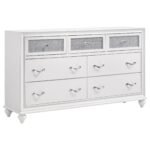 mirror, all in a crisp white finish with shiny metal hardware with faceted