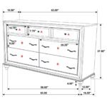 two-drawer nightstand, five-drawer chest, and seven-drawer dresser with