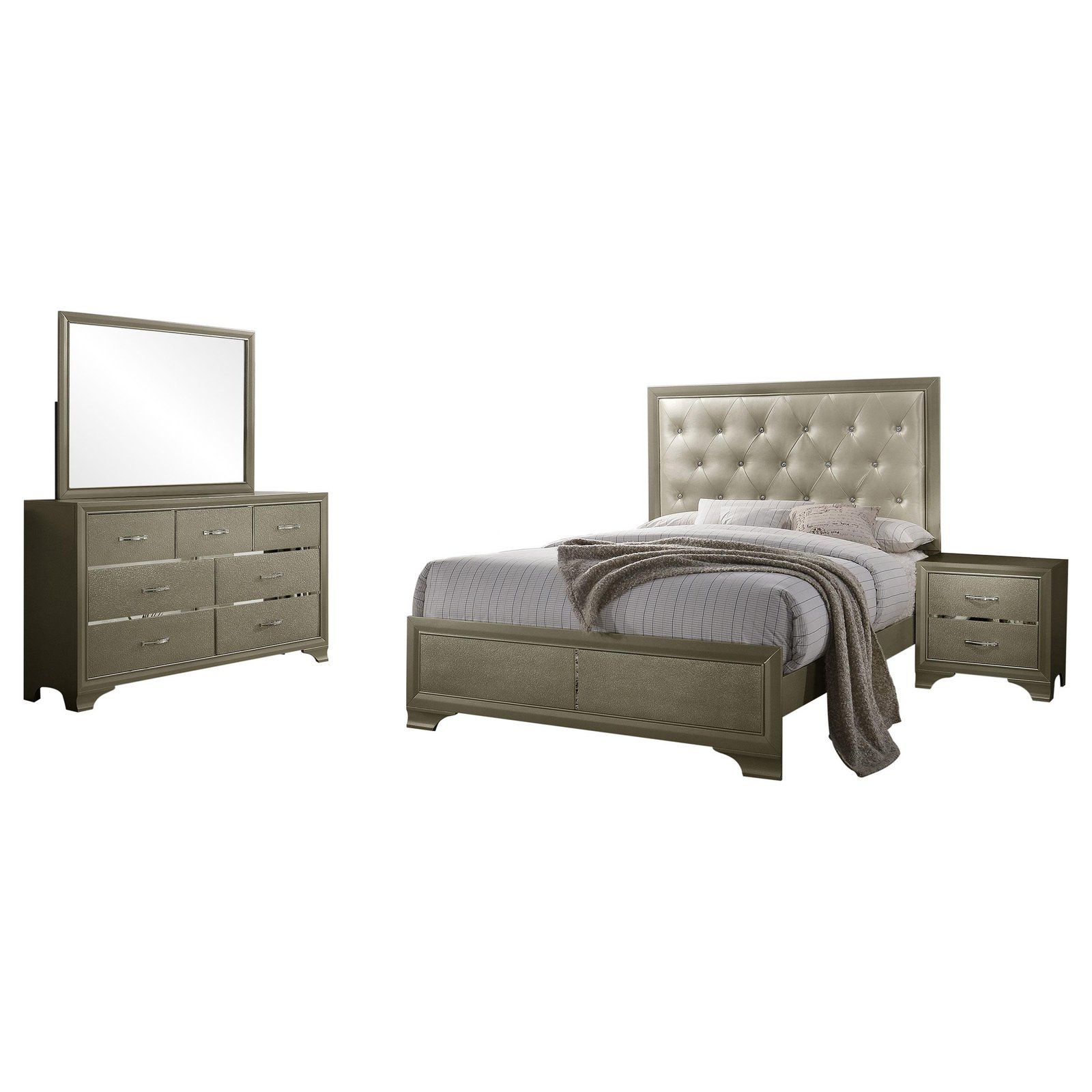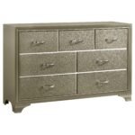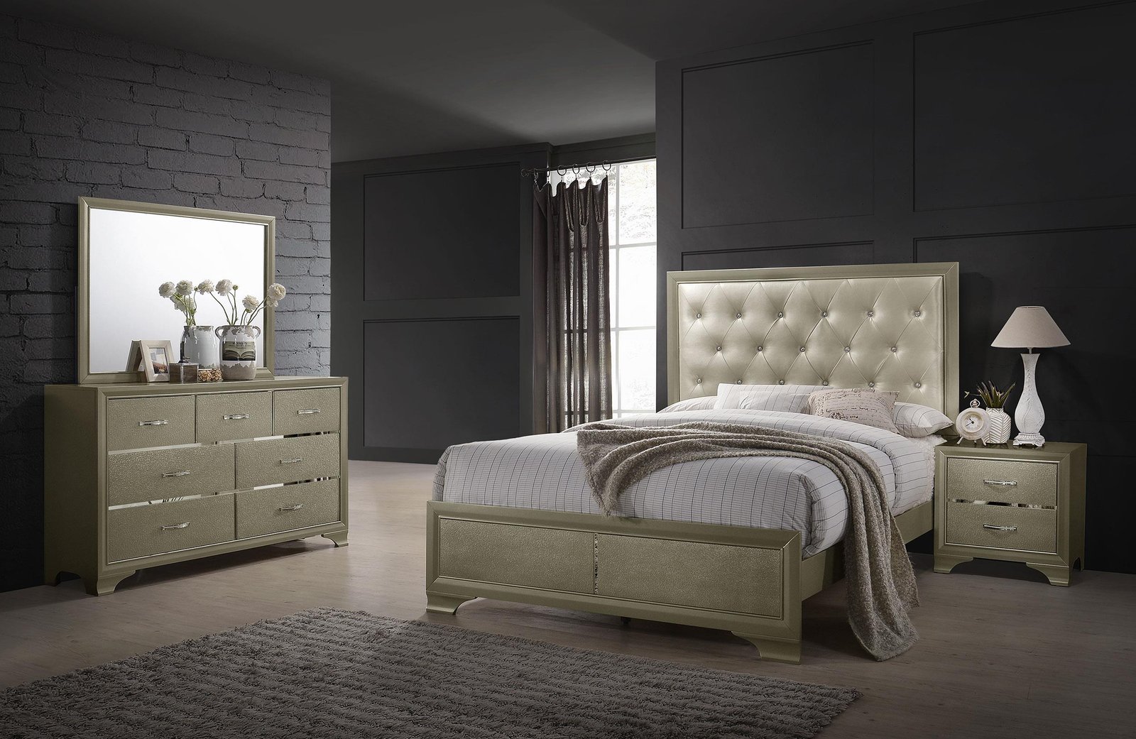 nightstand, dresser, and mirror, all in a stunning champagne finish.