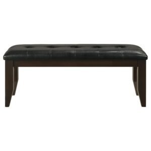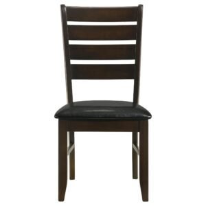durability, while the ladder-back chairs and padded bench provide comfort and