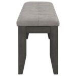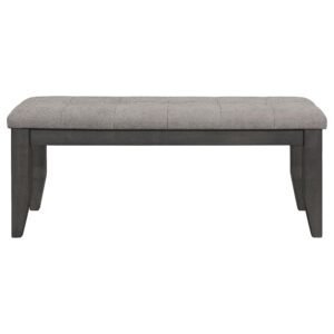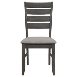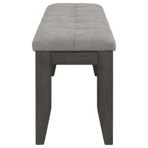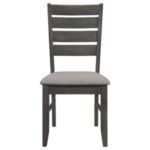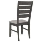 durability, while the ladder-back chairs and padded bench provide comfort and