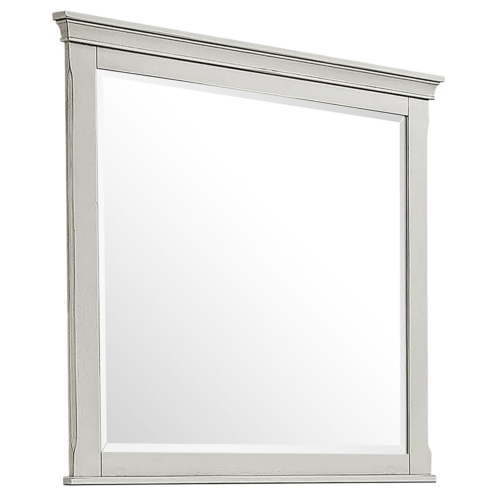 a dresser and mirror combo. A paneled headboard and footboard feature a