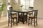 counter height dining set. A rich cappuccino finish pairs with soft tan