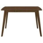 simplistic dining table is constructed with a rectangular tabletop and