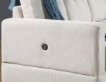Beige Woven Material, Button Tufting, High Density Foam Cushion, Squared Arms, Sewn On Backs and Seats, USB Technology Plug, & 3†Black Plastic Legs