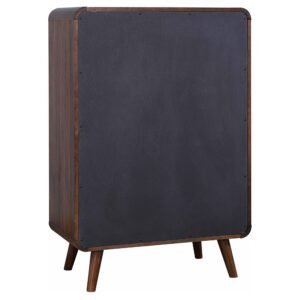 retreat with this mid-century modern bedroom set. Expertly crafted from pine,