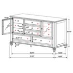 spacious drawers to glass-paneled cabinets, this collection effortlessly