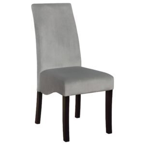 with flared backs, the chairs come with an elegant grey fabric for style and