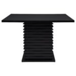 the table and four side chairs feature a rich black finish. Sleek and clean,