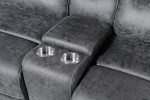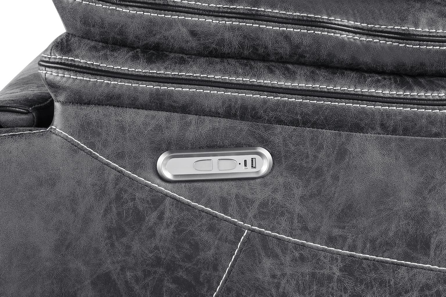 Gray Treated Microfiber Fabric, Coil Spring Cushions, Power Reclining, Pillowtop Arms and Headrest, Console Storage, Oversized Seating, Reenforced Steel Reclining Mechanism, USB Ports