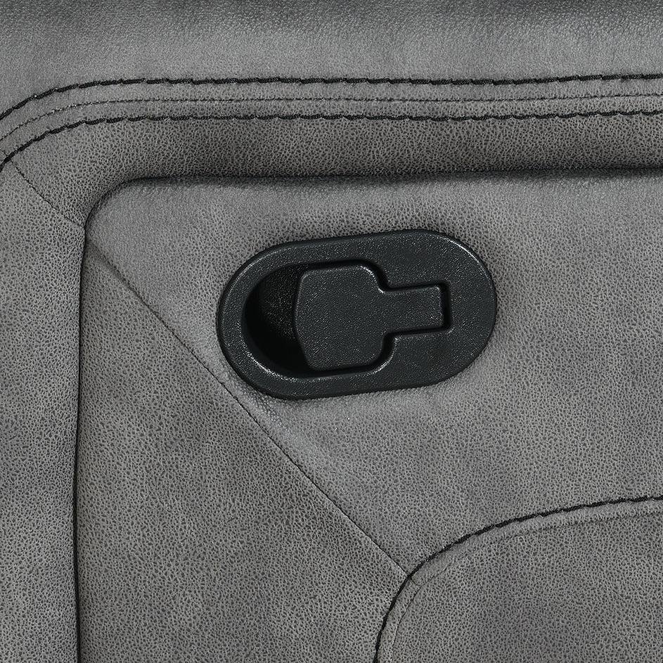 Gray Plush Fabric, & Dual Manual Reclining, Contrast Stitching, & Pillow Top Arms and Headrest, Two Storage Console, & Stainless Steel Cup Holders, USB and Power Outlet in Each Console, Separates Into 3 Pieces, Backs Detach for Easy Delivery