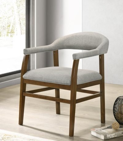 $2,269.93Warm Brown Table Base, 100% Solid Wood Table Base, Light Gray Marble Table Top, Rounded Table Edges, Light Gray Upholstered Chairs, Durable Woven Material, Barrel Seating