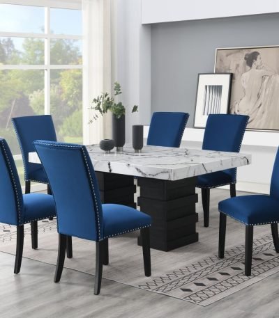 James-DINING TABLE & 4 BLUE CHAIRS